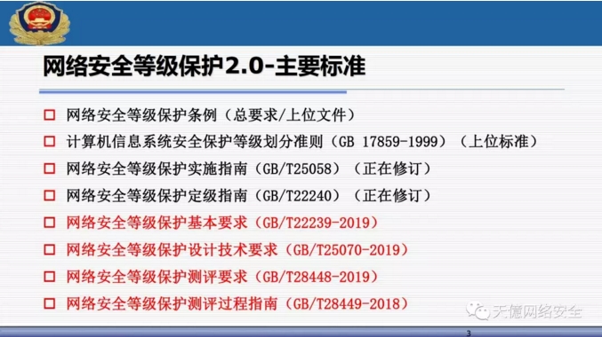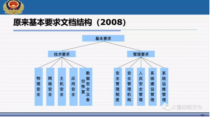 (2)三个核心标准,包括基本要求、设计要求和测评要求,形成了完全统一的架构; ?
