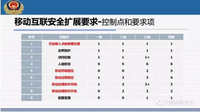 (3)新标准里把可信计算使用写入了标准范围,从一级开始到四级全部提出了可信验证空间。 ?